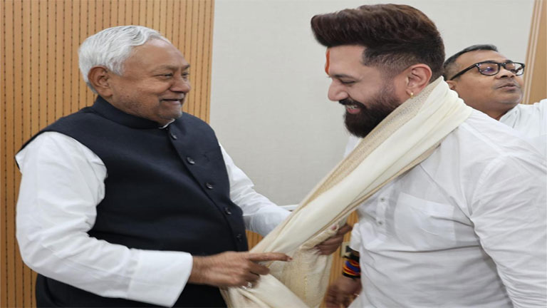 पटना: केंद्रीय मंत्री और लोक जनशक्ति पार्टी (रामविलास) के प्रमुख चिराग पासवान ने मुख्यमंत्री नीतीश कुमार से मुलाकात की है। इस दौरान, उन्होंने मुख्यमंत्री नीतीश कुमार को बिहार विधानसभा चुनाव में एनडीए की जीत की बधाई दी। केंद्रीय मंत्री चिराग पासवान के नेतृत्व में लोजपा (रामविलास) का एक प्रतिनिधिमंडल शनिवार सुबह मुख्यमंत्री नीतीश कुमार के आवास पर पहुंचा। मुलाकात के दौरान एक-दूसरे को चुनाव में मिली जीत की बधाई और शुभकामनाएं दी गईं।